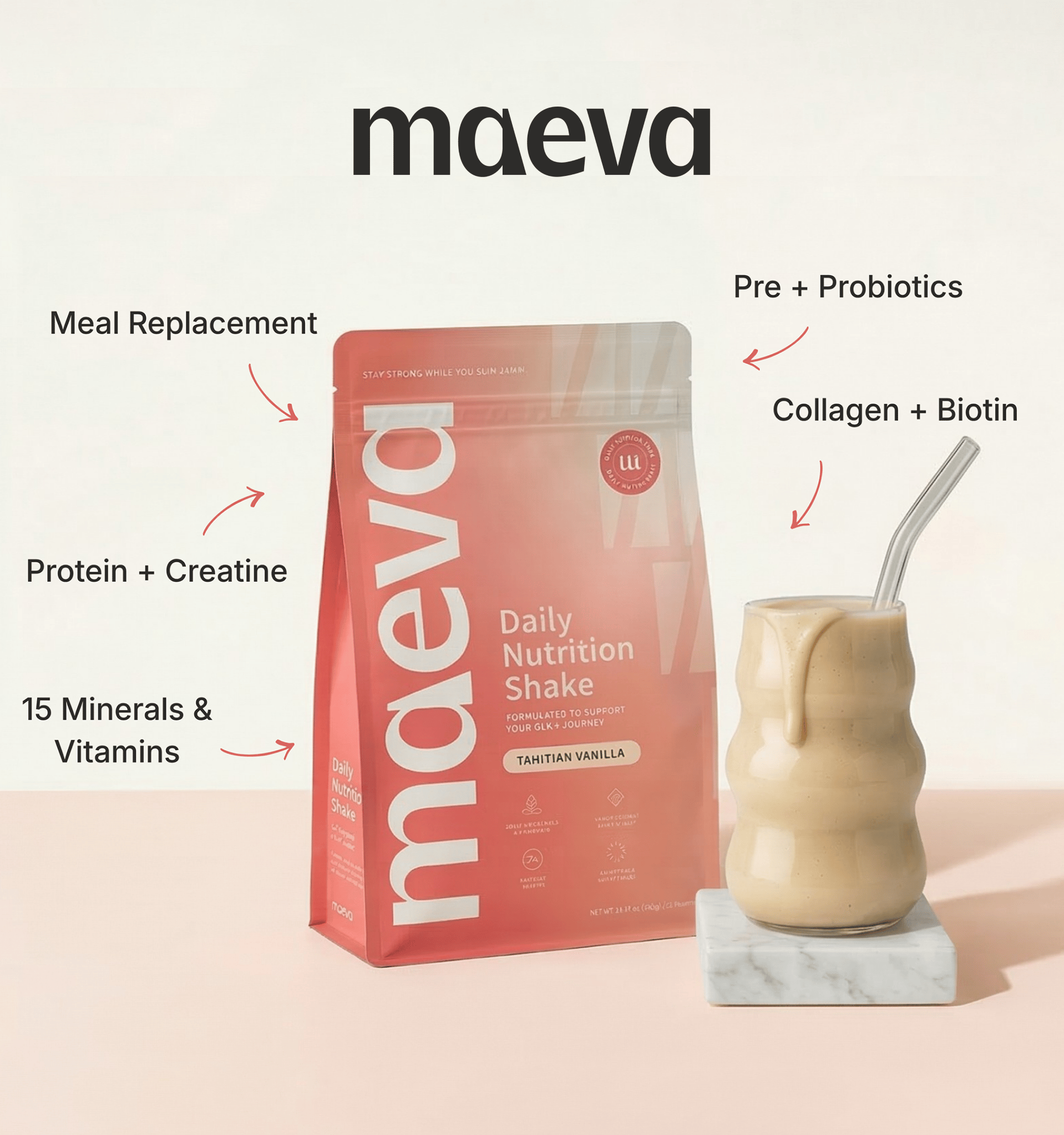 You may have tried protein shakes and adding in separate vitamins, but it can get expensive, and you still might feel like you aren’t giving your body what it actually needs. That’s why I recommend Maeva. Maeva is designed specifically for people on GLP-1, with everything in one — high-quality protein, collagen, fiber, biotin, plus 15 essential vitamins and minerals.